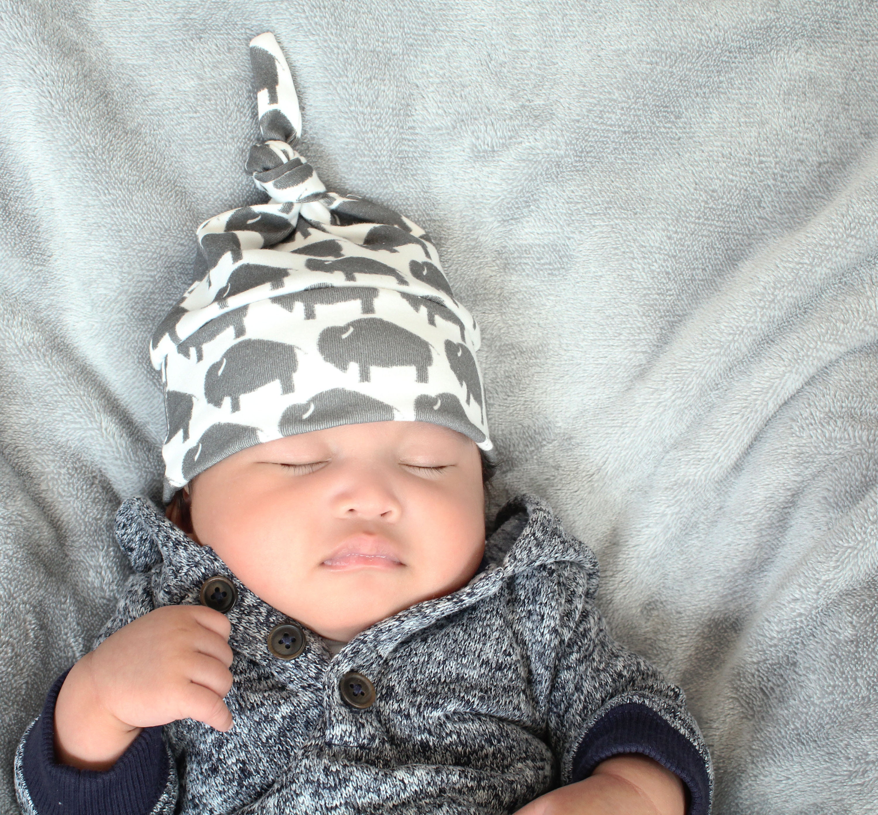 Baby Hat Hipster Charcoal Bison Buffalo Organic Knot Modern