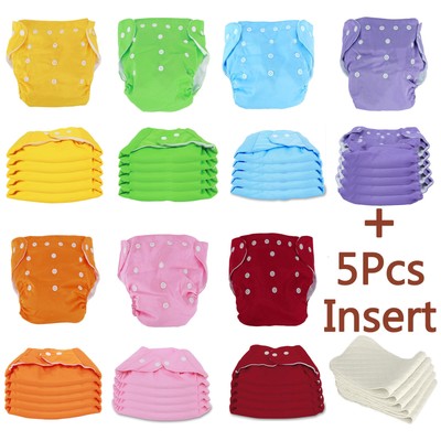 5 Pcs 5 Inserts Cloth Diapers Lot Nappies Adjustable