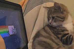 Neonatal kittens are much more at risk of hypothermia than they are of starvation. Kitten watching nyan cat котенок смотрит ня кота.
