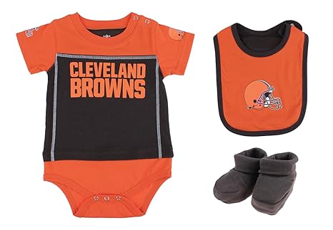 Outerstuff Nfl Baby Boys Newborn Infant Lil Jersey 3 Piece Bodysuit Set Cleveland Browns Brown Orange 24 Months