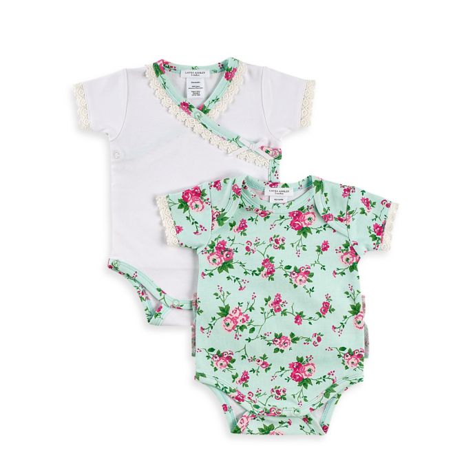 Laura Ashley London La Pima 2 Pack Pima Cotton Bodysuits In White Green