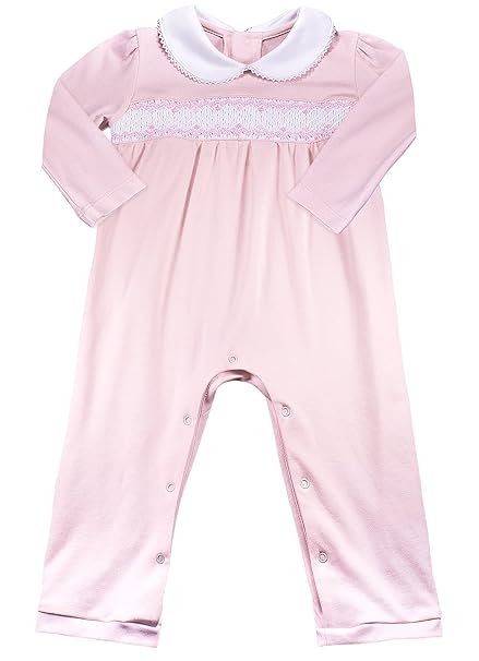 Baby Girls 100 Organic Pima Cotton Layette Hand Smocked Pink Footless Overall