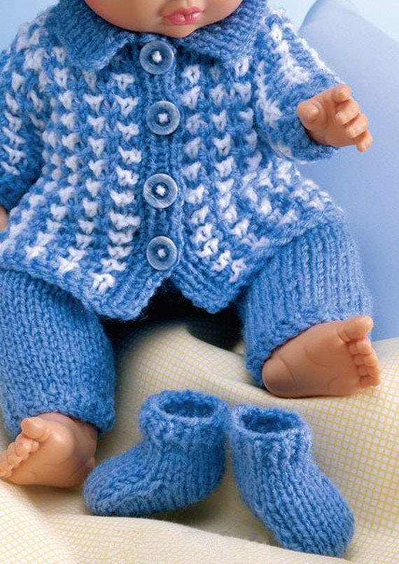 Pdf Vintage Doll Clothes Knitting Pattern Premature Newborn Baby Boy Blue Pram Matinee Coat Bobble Hat Trousers Leggings Tiny Tears Reborn