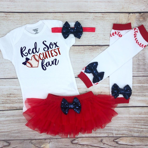 Red Sox Cutest Fan Baby Girl Baseball Outfit Baseball Baby Clothes Newborn Baseball Baby Girl Outfit Sparkly Baseball Outfit
