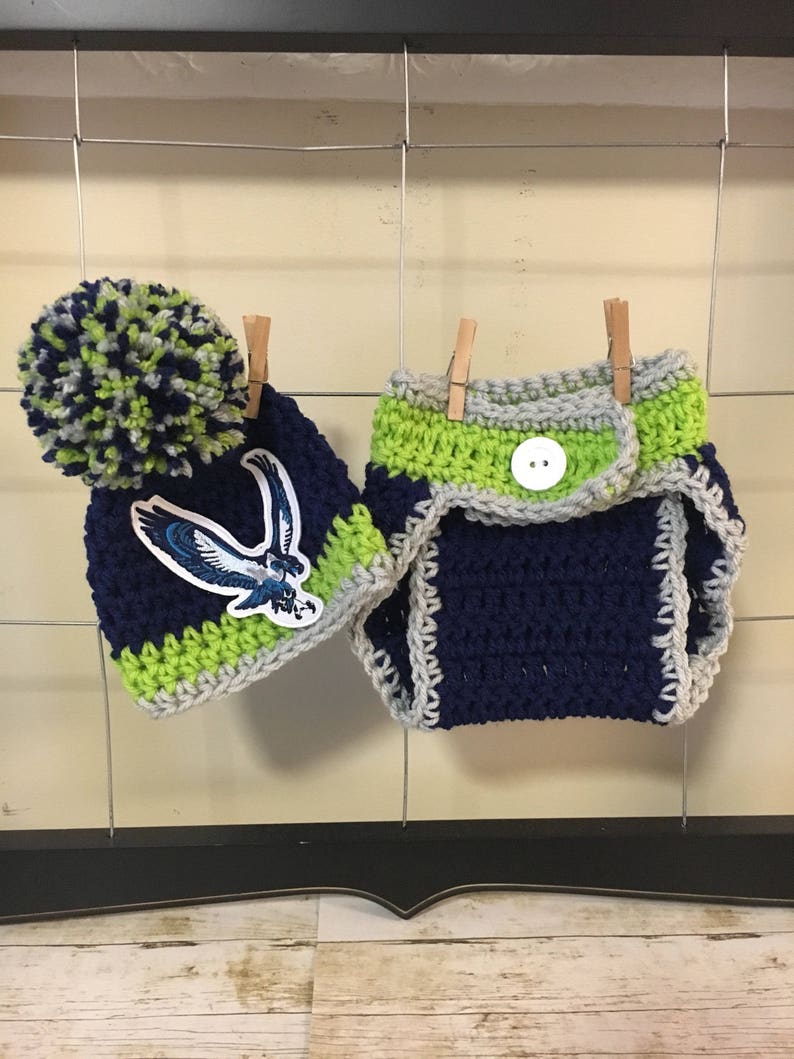 Baby Seattle Seahawks Hat Boys Seahawks Hat Seahawks Diaper Cover Newborn Seattle Seahawks Outfit And Photo Props Crochet Seahawks Hat