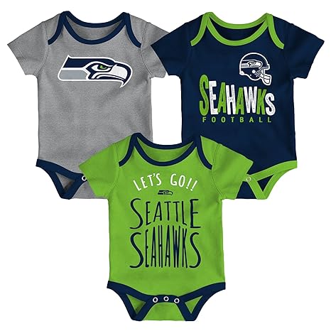 Seattle Seahawks Newborn Infant Name Number Three Pack Bodysuit Set College Navy Neon Green Heathered Gray