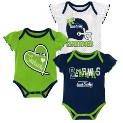 Outerstuff Seattle Seahawks Nfl Lil Tailgater Infant 3 Pack Bodysuit Creeper Set