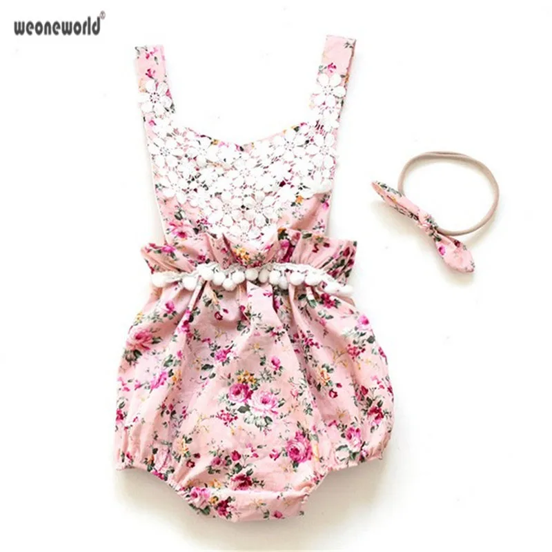 Us 8 93 40 Off Weoneworld Newborn Baby Girl Clothes Boutique Vintage Floral Lace Jumpsuit Girl Bloomer Romper Kids Clothes Matched Headband In