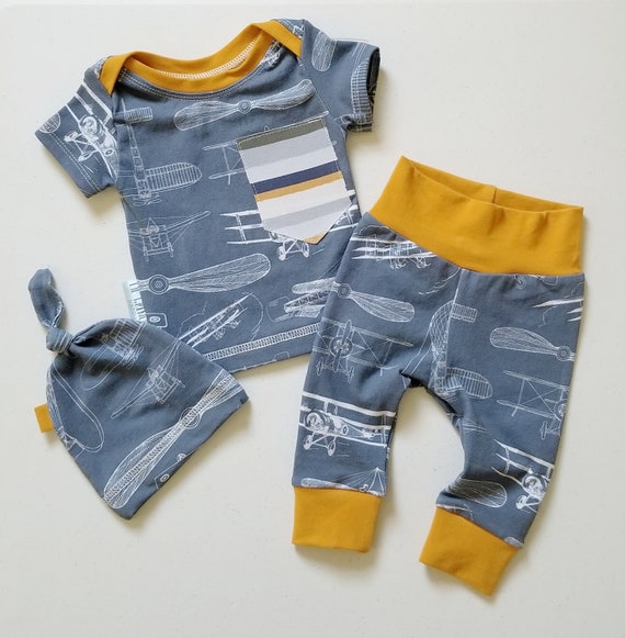 Baby Boy Vintage Postal Airplanes Take Home Set Newborn Boy Clothes Baby Shower Gift Boy Coming Home Outfit New Baby Gift