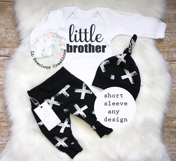 Little Brother Outfit Coming Home Baby Boy Outfit Newborn Boy Clothes Baby Shower Gift Vintage Crosses Outfit Black And White Monochrome