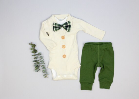 Classic Baby Boy Clothes Cream Olive Spring Or St Patrick S Day Vintage Inspired Cardigan Set With Pants Bow Tie Newborn