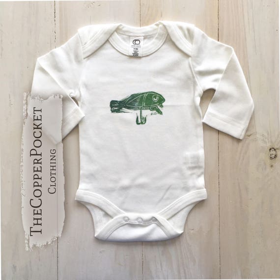 Vintage Lure Organic Baby Bodysuit Nautical Boy Clothes Adventure Fishing Ocean Sea Fish Beach Hipster Outdoors Retro 215 Newborn Gift Daddy