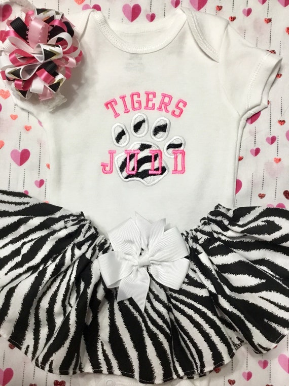 Personalized Baby Girl White Paw Tiger Outfit Zebra Print Baby Girl Outfit Baby Shower Gifts Baby Girl Gifts Newborn Outfits