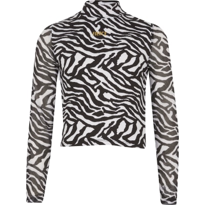 Girls Black Zebra Print Fierce Mesh Top
