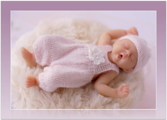Clothes For Camille Allen Baby Doll Mini Doll Clothes Baby Girl Pink Outfit Miniature Knitting 4 Inches Baby Doll Newborn Doll Clothing