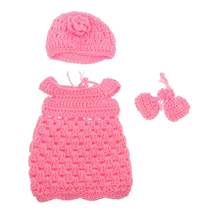 Baoblaze Newborn Baby Doll Clothes For 10inch 11inch Reborn Boy Doll Knitted Dress Flower Hat Socks Suit Pink
