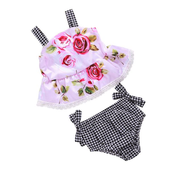 2019 Baby Girl Sets Toddler Girl Designer Clothes Newborn Baby Sling Top Lotus Leaf Lotus Leaf Black White Plaid Shorts 6 From Bossbaby 5 93