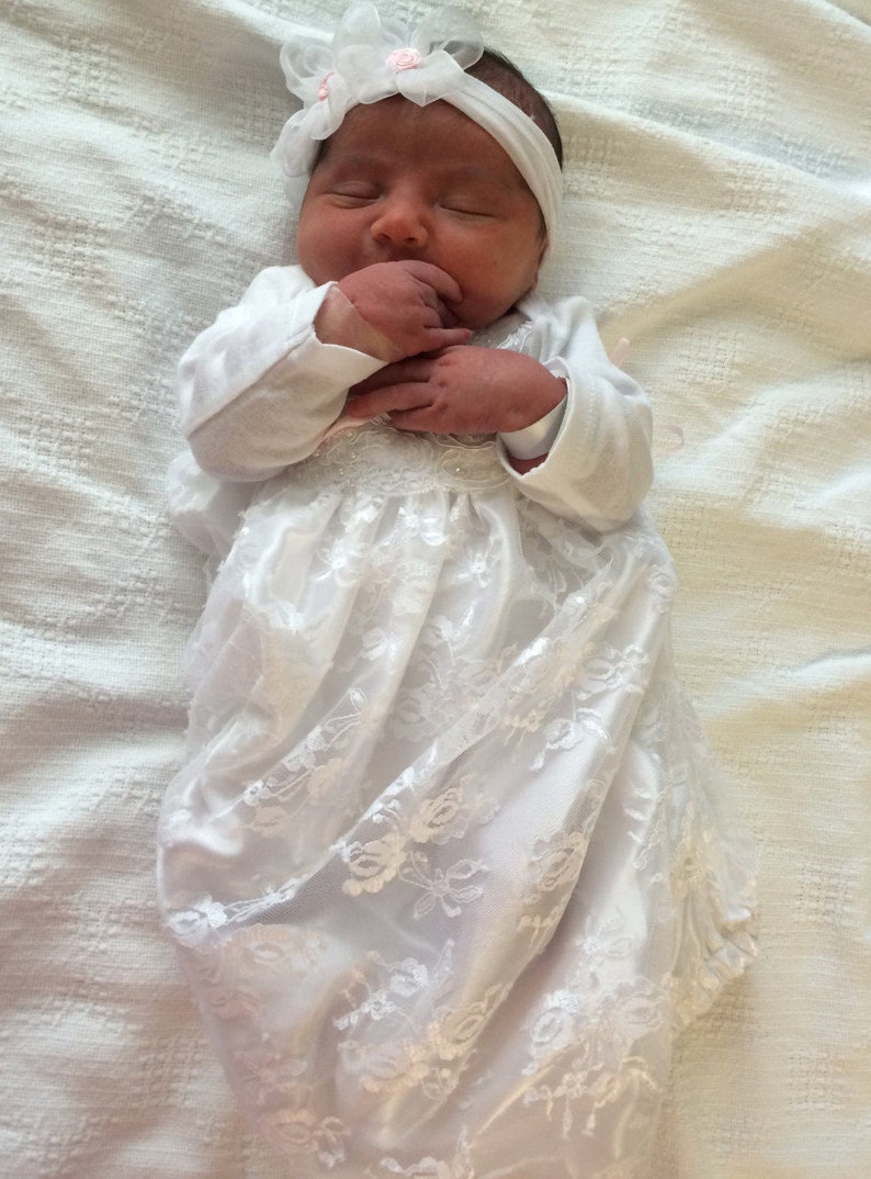 Newborn Girl Coming Home Outfit Baby Girl Coming Home Outfit White Lace Sleeper Gown Designer Baby Clothes Cute Baby Clothes