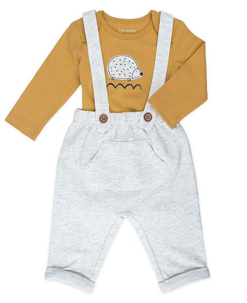 Baby Boy And Girl 2 Piece Hedgehog Bodysuit And Heather Overall Outfit Set
