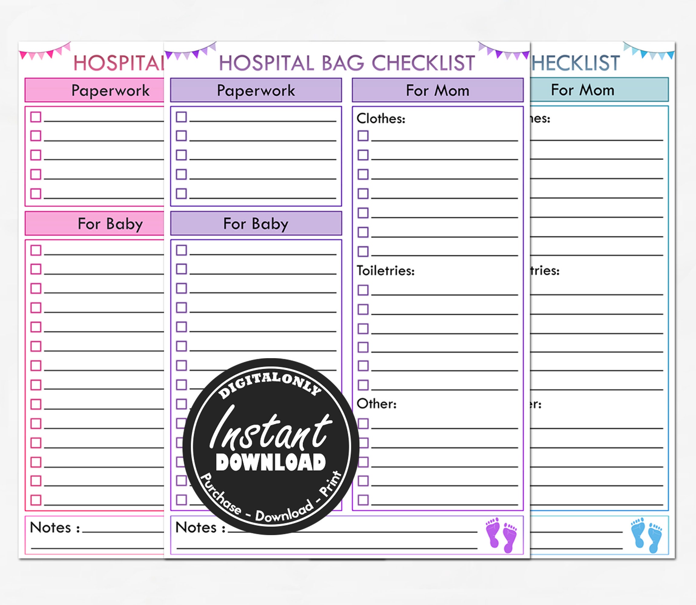 New Baby Printable Hospital Bag Checklist Instant Download Baby Planner Maternity Bag Life Organiser Mom Planner Baby Packing List