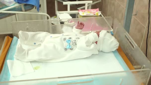 Little Newborn Baby Lying In A Cradle In Hospital