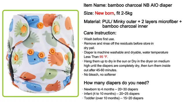 Us 5 8 Happy Flute Newborn Diapers Tiny Aio Cloth Diaper Bamboo Charcoal Double Gussets Inner Waterproof Pul Outer Fit 5kg Baby In Baby Nappies