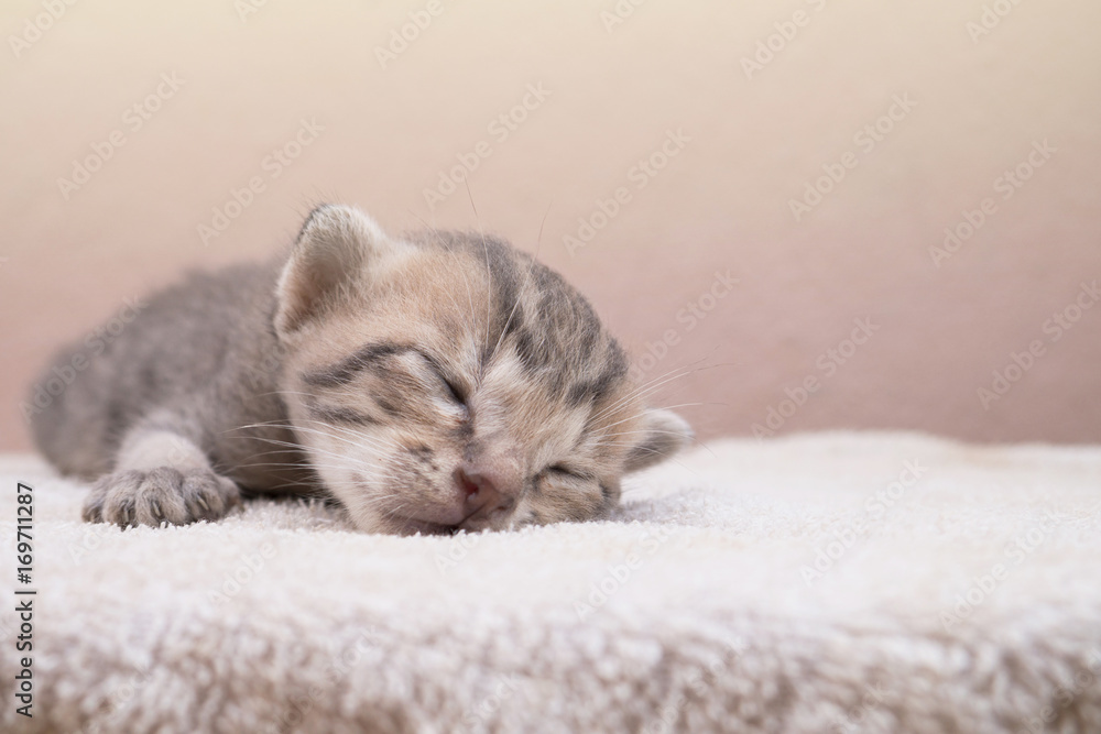 Closeup Of Little Brown Adorable Newborn Kitten Sleeping On