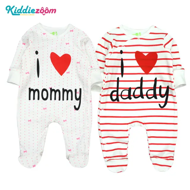 Us 4 62 6 Off Newborn Baby Rompers Jumpers I Love Mum Dad Cotton Boys Girls Sleepsuit In Rompers From Mother Kids On Aliexpress