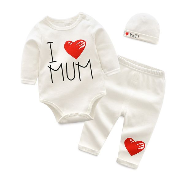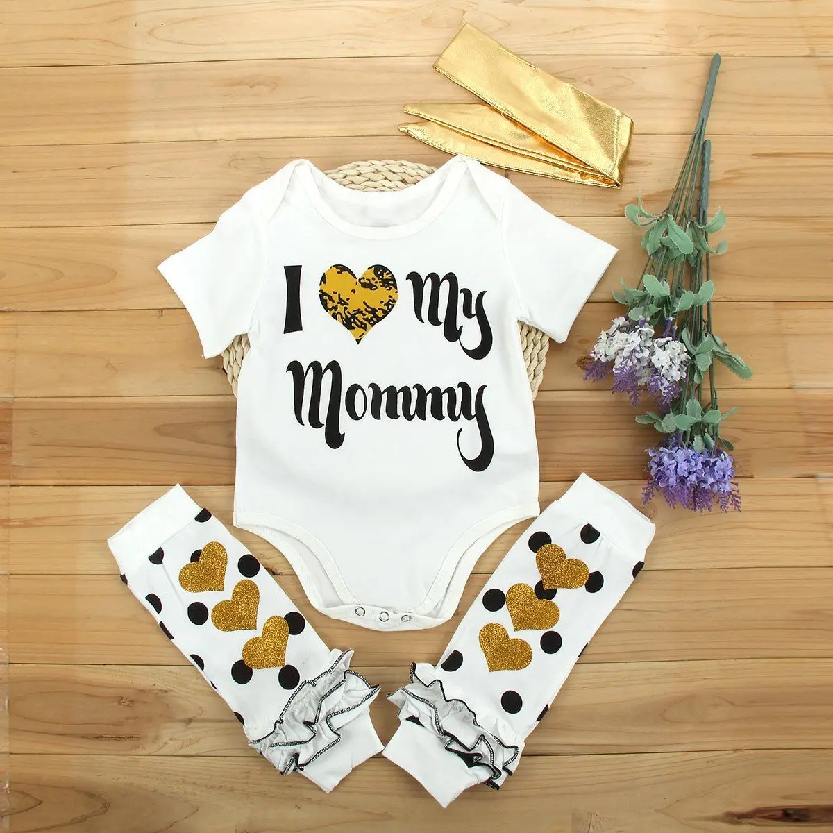I Love My Mommy Newborn Baby Girl Clothes Sets Long Sleeve Bodysuit Jumpsuit With Headband Vetement Bebe Fille Infant Clothing