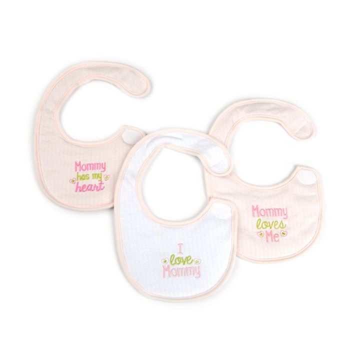 Hamco Mommy Loves Me 3 Pack Newborn Bibs In Pink White
