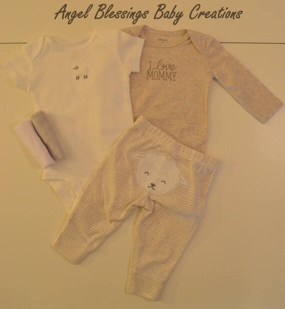 Details About Newborn Baby Girl Or Boy Carter S 3 Pc I Love Mommy Little Lamb