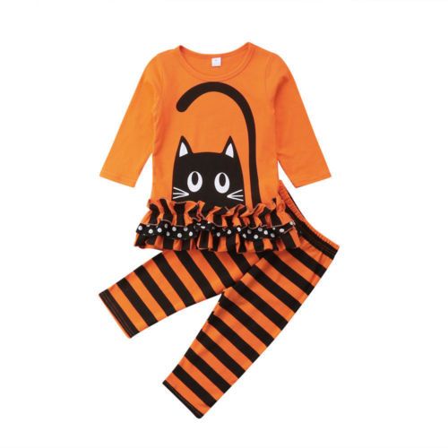 2019 1 6y Toddler Kid Baby Girl Cat Kitten Cotton Long Sleeve Ruffle T Shirt Tops Striped Pant Leggings Baby Clothes Outfits Set From Buycenter
