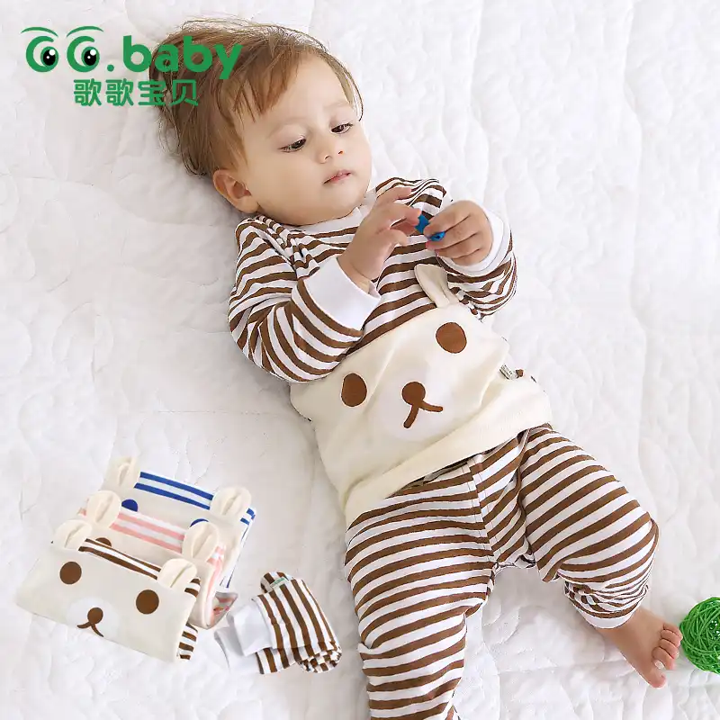 Newborn Baby Boy Clothes 2pcs Set Striped Cartoon Bear Long