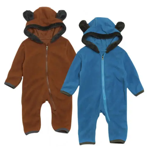 Details About Newborn Baby Boy Girl Winter Outfits Jumpsuit Hooded Romper Warm Coat Outwear