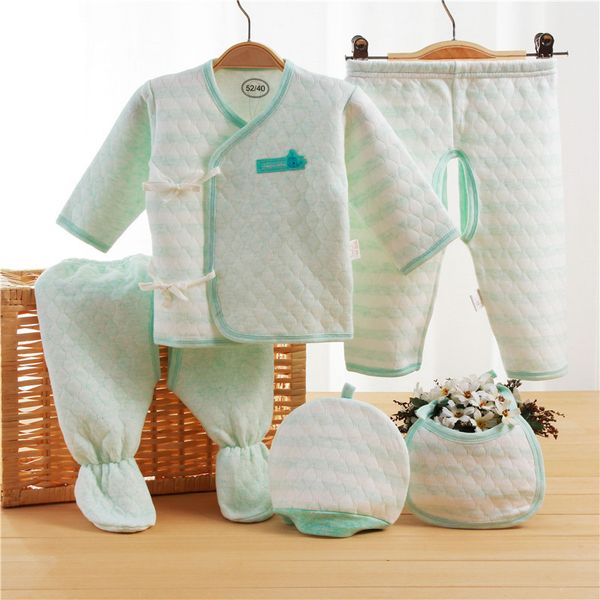 2019 Newborn Baby Boy Clothes Winter Five Pieces Layette Set Pink Green Baby Girls Clothing Cotton Super Soft Inc Top 2 Pants Bib Hat From Yunrao