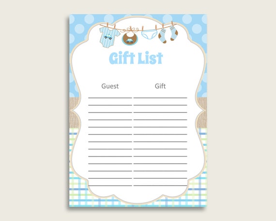 Clothes Baby Shower Gift List Blue Beige Gift List
