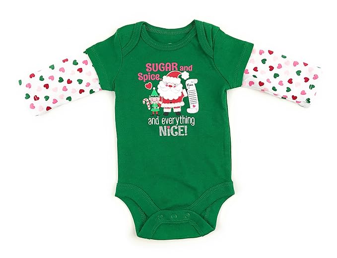 Assorted Santa Ugly Sweater Reindeer Elf Mistletoe Baby Boys Girls Christmas Bodysuit Dress Up Outfit Sugar Spice Nice List Newborn