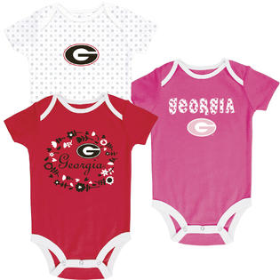 Ncaa Newborn Infant Girls 3 Pack Bodysuits Georgia Bulldogs