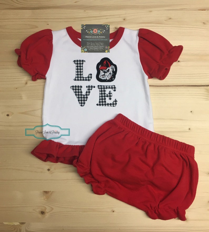 Georgia Bulldogs Baby Outfit Bulldogs Baby Baby Girl Uga Outfit Baby Girl Tee And Bloomer Set Baby Shower Gift Football Baby Oufit Dawgs