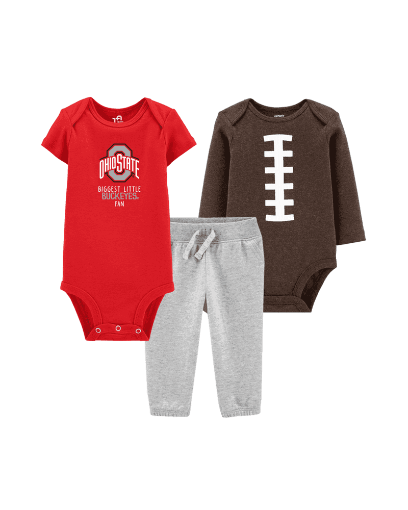 Infant Ohio State University Buckeyes Bodysuits 3 Pack Organic Cotton Set