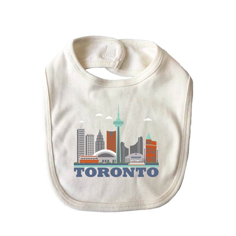 City Living Bib Toronto Canada Baby Shower Newborn Gift Drool Bib Baby Nursery Gender Neutral Hometown Organic