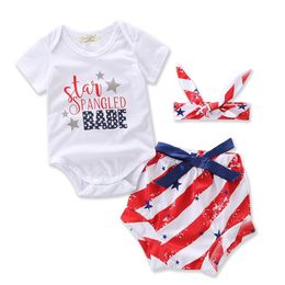 Ins Baby American Flag Clothing Sets Summer Newborn Cotton 3pcs Suit Romper Tutu Pants Headband Infant Clothes Birthday Gifts Wx D32