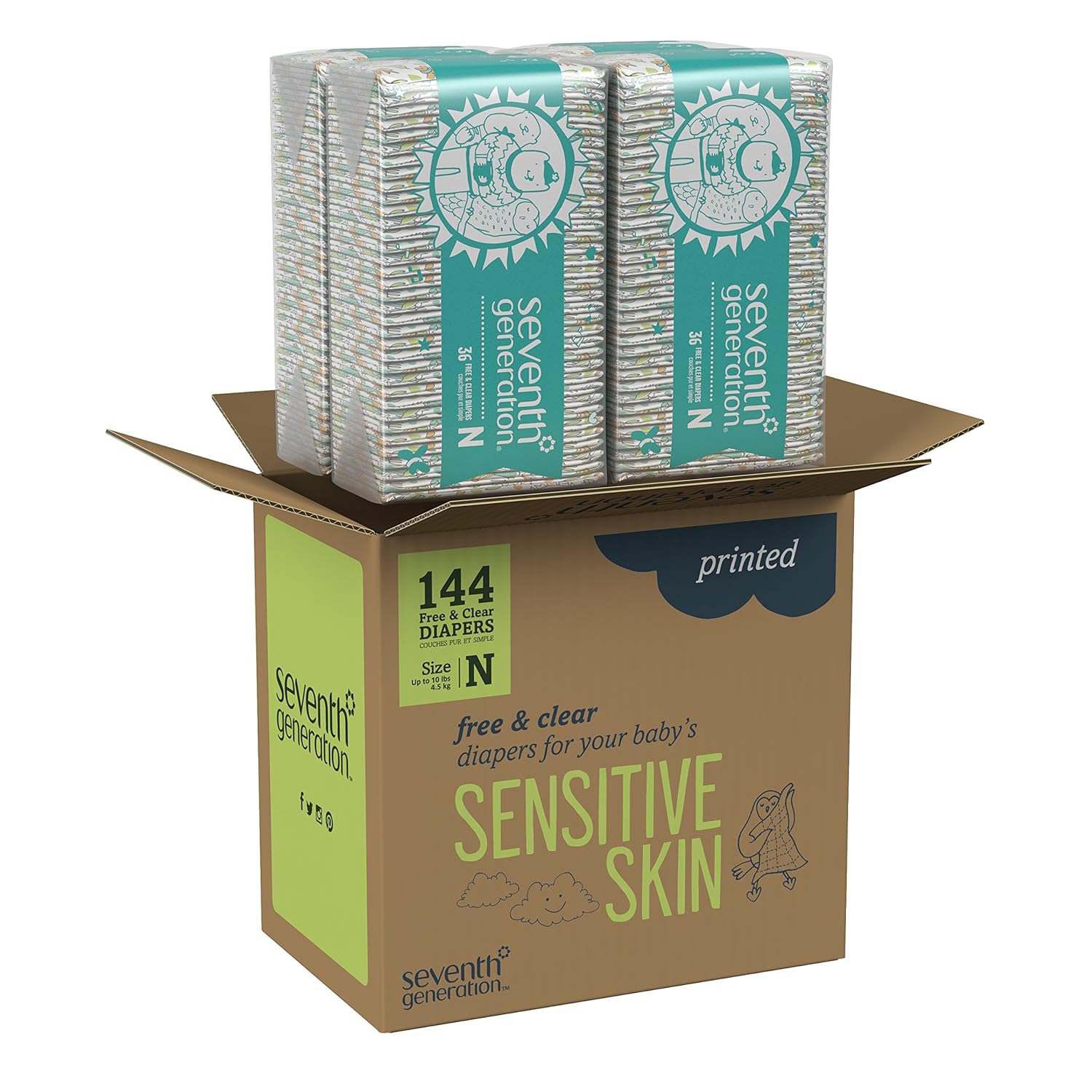 Seventh Generation Baby Diapers For Sensitive Skin Animal Prints Size 0 Newborn 144 Count Packaging May Vary