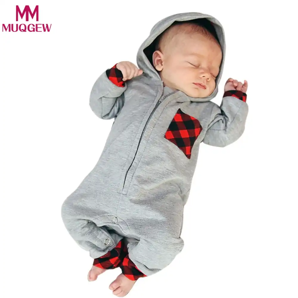 2018 New Fashion Newborn Baby Boy Girl Clothes Zipper Hooded Romper Gary Plaid Rompers Jumpsuit One Pieces Bebes Warm Suit
