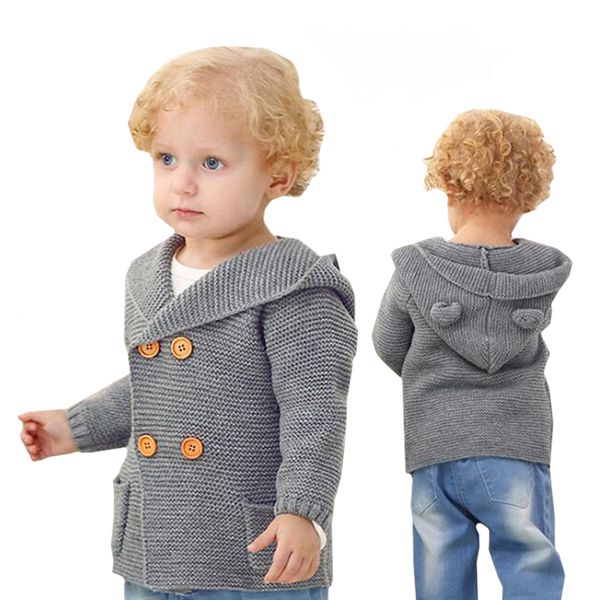 Newborn Baby Boy Clothes Baby Jacket Winter Fall Knitting Cardigan Warm Sweaters Fashion Long Sleeve Hooded Coat Boy Clothing Grey Cardigans For Girls