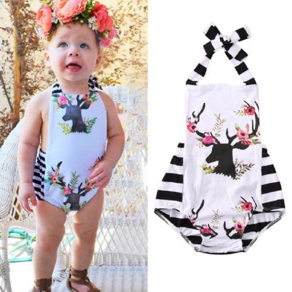 2019 Baby Girls Clothes Newborn Infant Floral Deer Romper Roupas Jumpsuit Toddlers Boutique Clothing Outfits Ruffled Pajamas Handmade Bodysuit From