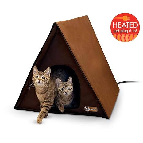 K H Pet Products Outdoor Multi Kitty A Frame Heated Chocolate Brown 35 X 20 5 X 20 Inches
