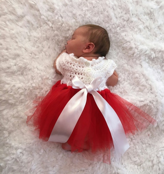Christmas Dress White Ivory W Red Baby Dress Crocheted Bodice Tulle Tutu Skirt Sizes Newborn 0 3 Months 3 6 Months 6 12 Mos Fre