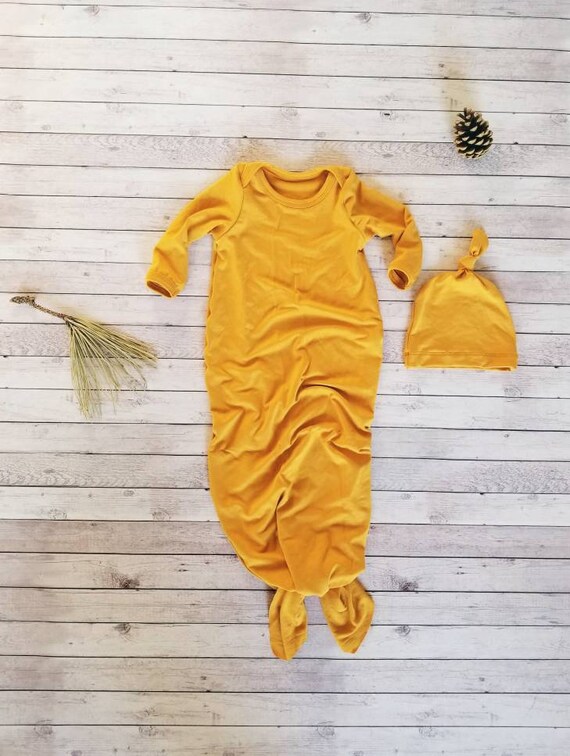 Knotted Baby Gown Mustard Yellow Bamboo Baby Gown Coming Home Outfit Newborn Boy Clothes Baby Boy Shower Newborn Knot Gown Hospital