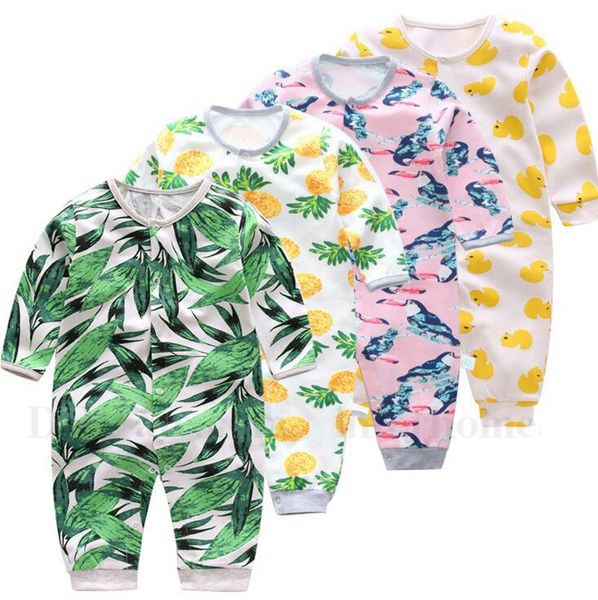 2019 Baby Girl Clothes Ins Newborn Rompers Cotton Printed Onesies Boys Long Sleeve Pants Button Jumpsuits Bamboo Flamingos Pear Clothing H520 From